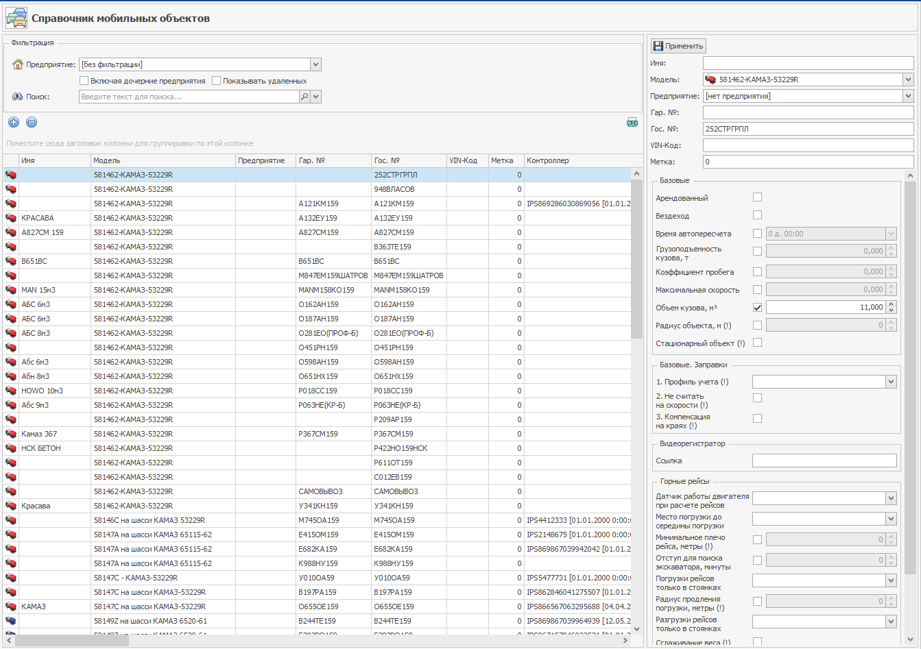 Справочник «Мобильные объекты»