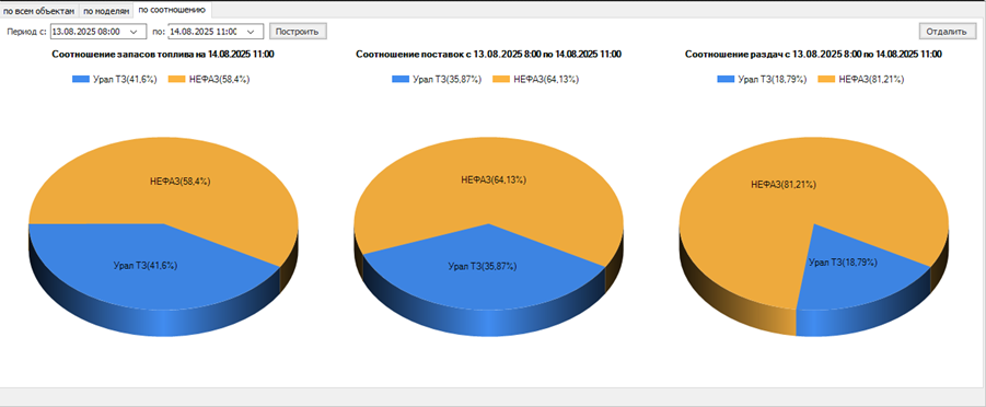 соотношение запасов, поставок и раздач топлива для каждого ТЗ.