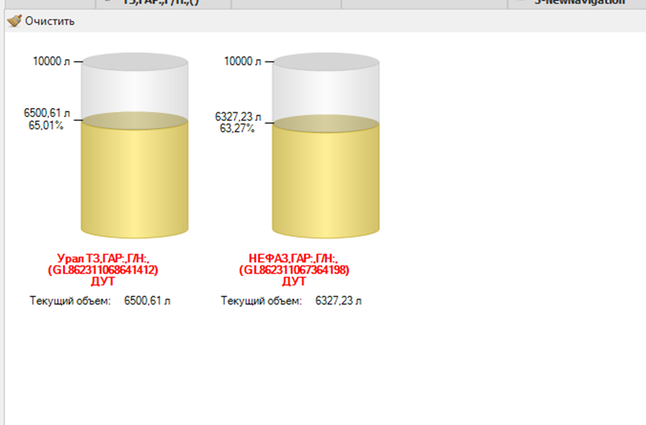 После переноса на экране появится графическое отображение цистерны с указанием текущего объёма топлива. -