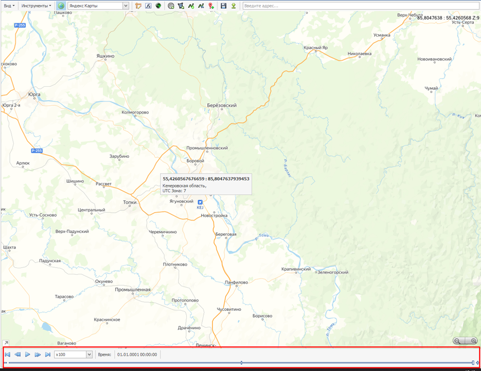 Для отображения истории перемещений необходимо из обозревателя объектов перенести нужные транспортные средства в область инструмента.