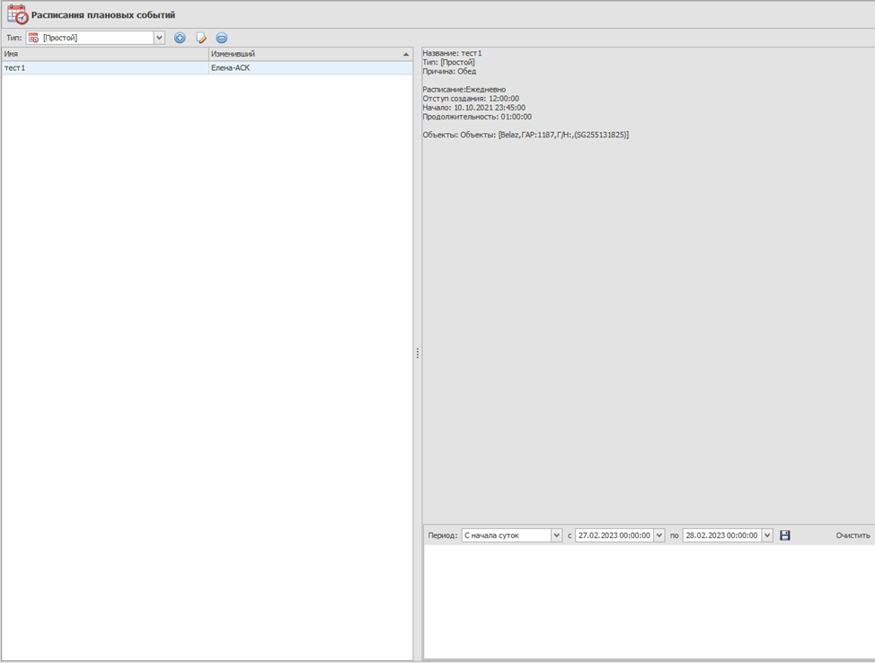 Справочник плановых пользовательских событий служит для создания событий по расписанию.