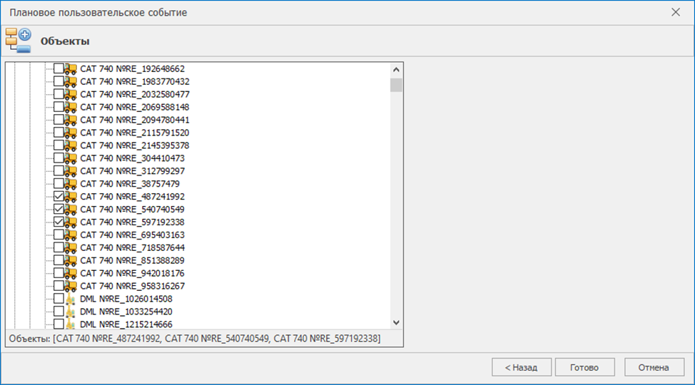 Вторая страница мастера позволяет выбрать мобильные объекты, на которые распространяется задача. Можно выбрать конкретные объекты или конкретные группы объектов, модели или типы моделей.