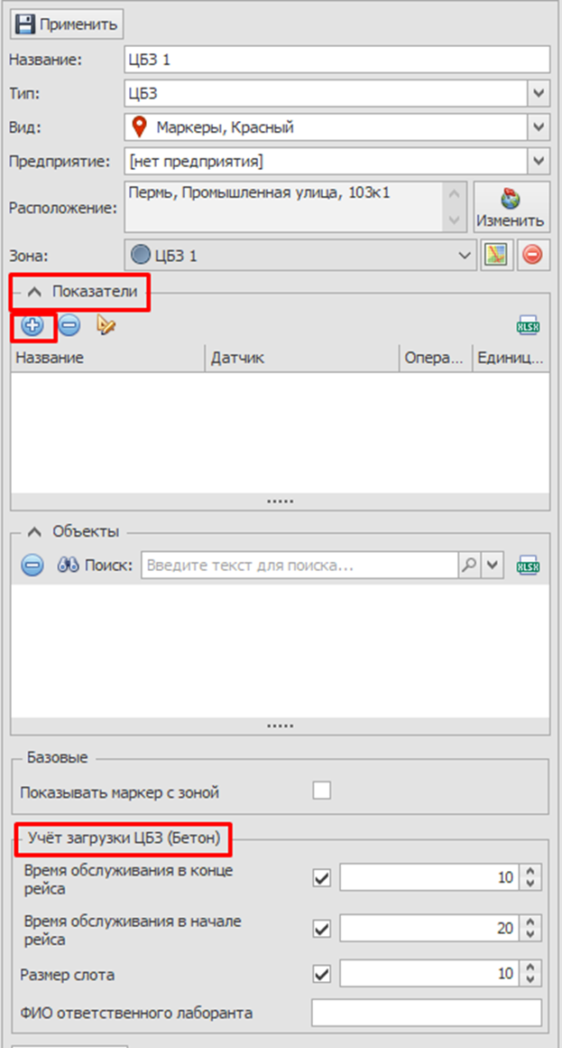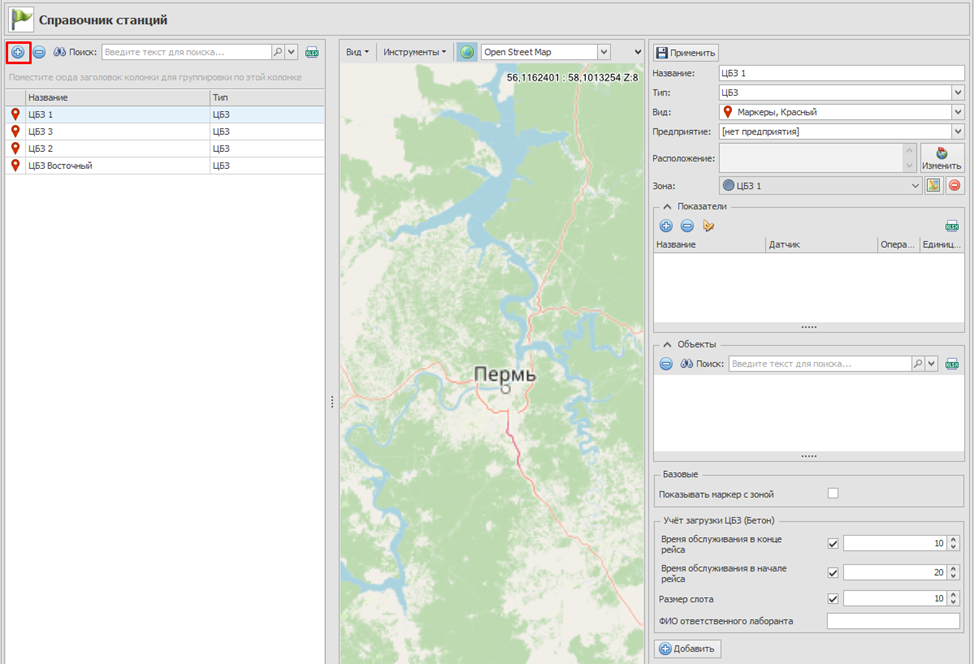 Для использования станции в модуле ЦБЗ, необходимо заполнить показатели в поле «Учет загрузки ЦБЗ».