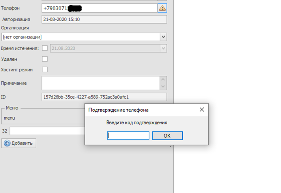 3. После этого, необходимо верифицировать номер телефона в системе. Перейти «Справочники» - «Пользователи», выбрать учётную запись, для которой будут настроены оповещения, и нажать «Редактировать», в поле «Телефон» внести номер контакта, который предварительно был отправлен боту АСК. После того, как номер телефона введён, необходимо нажать на кнопку справа от поля номера телефона. Далее система отправит код подтверждения в Telegram, который нужно будет внести в открывшуюся форму.