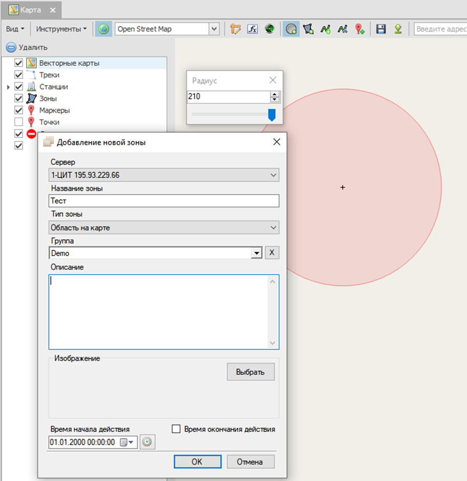 Нажмите кнопку «Добавить зону типа 'Точка с радиусом'».