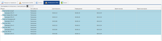 При группировке по зоне разгрузки показываются превышения по времени разгрузки.
