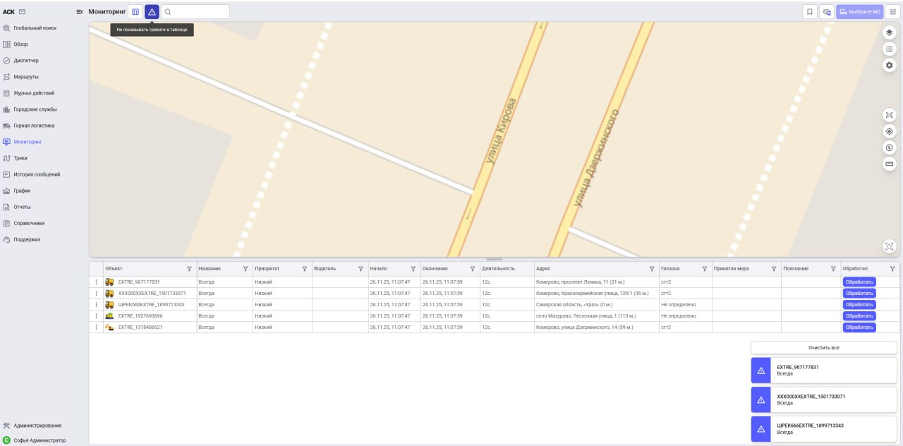 • Добавлена возможность отображать тревоги в таблице раздела мониторинга, в том числе на мобильных устройствах.