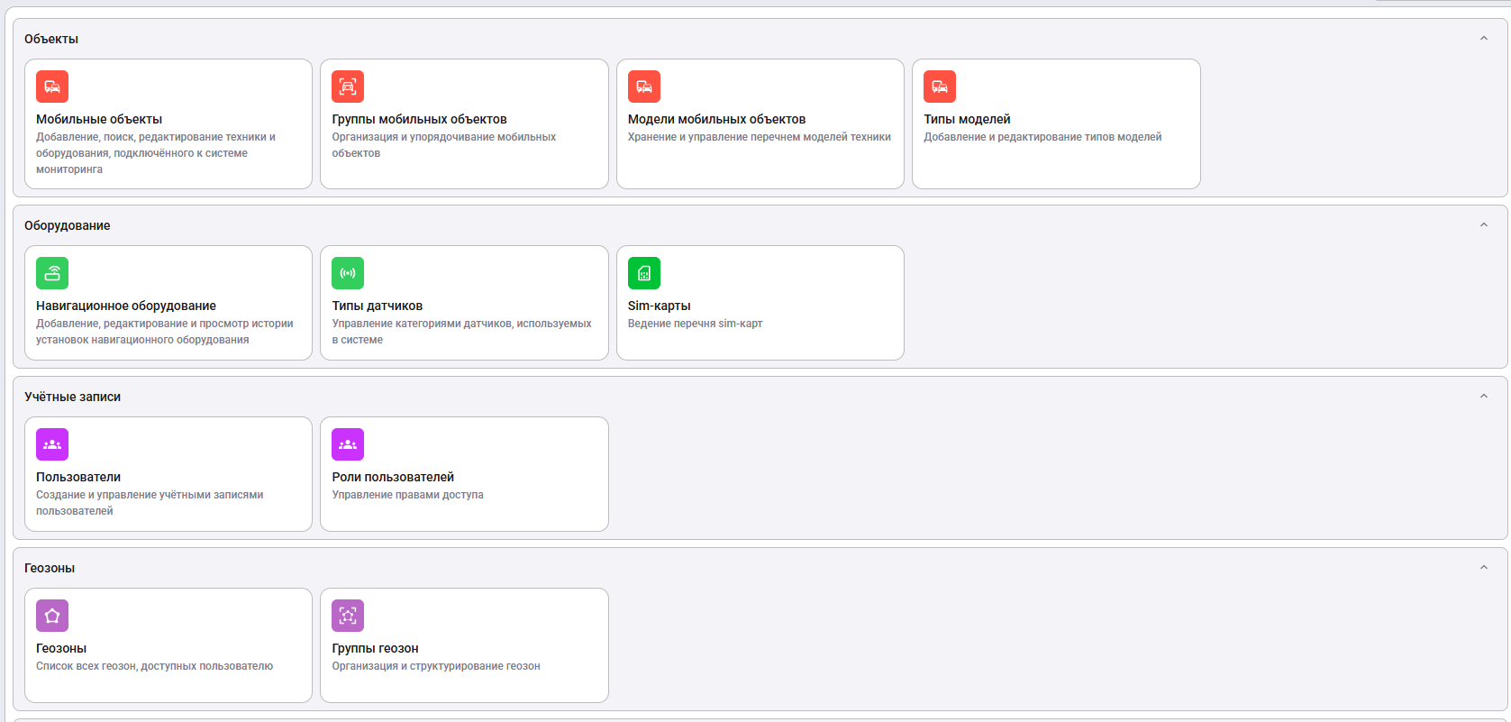• В карточках мобильных объектов настройки стоянок разделены на секции и добавлены подсказки для некоторых параметров.