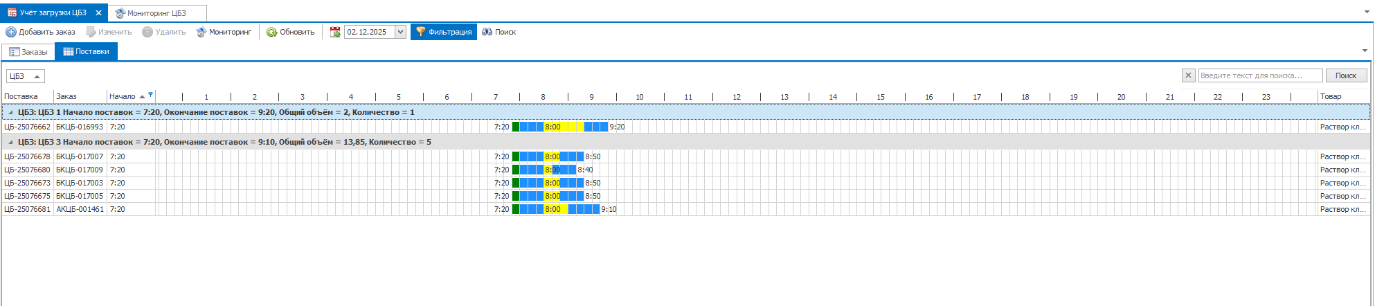 Я считаю что этот инструмент тоже должен быть представлен диаграммой Ганта по типу Представление 2: МАШИНЫ-ПОСТАВКИ с вертикальной временной шкалой которая показывает в каком временном моменте мы находимся, с возможностью настройки этого временного окна, фильтрации поставок по отношению к нему по их статусу выполнения и времени: выполненные, исполнимые, предстоящие к исполнению, а также отмененные (может что-то еще?).