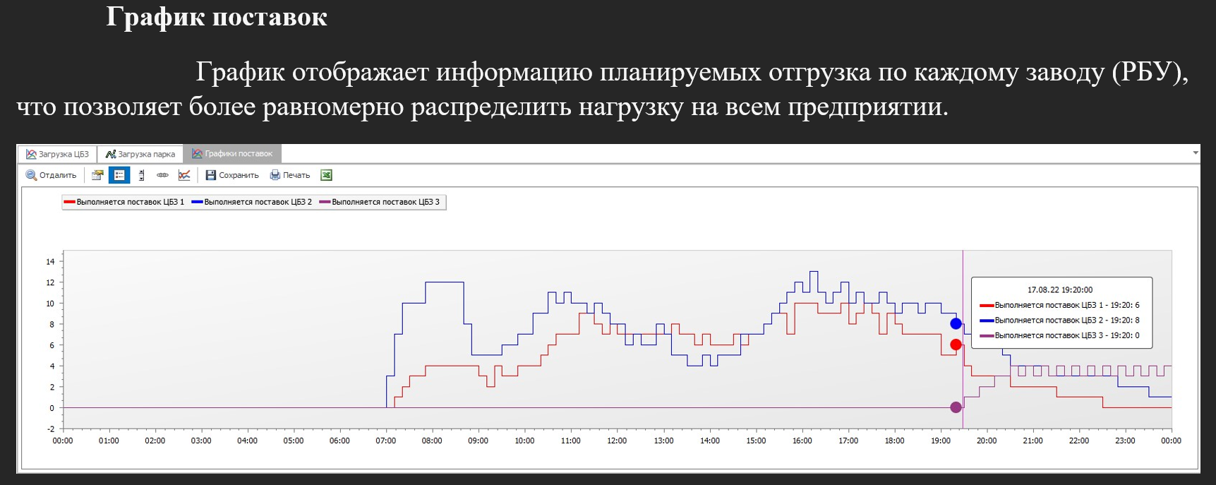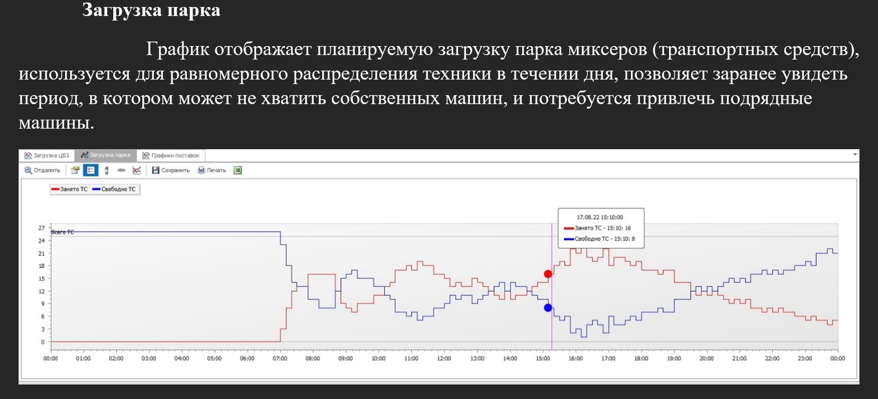 нужно вдумываться сколько же машин не хватает, он просто не очевидный, нужно переделать его так чтобы было просто понятно на каком временном промежутке есть проблема с техникой. - Ну и далее Думаю клиенту в этом аспекте важно понимать мощности завода и количество погрузок, чтобы делать сравнение, иначе нельзя сравнивать данные погрузок, так как расчет должен быть проведен при нормировании на одну единицу мощности.