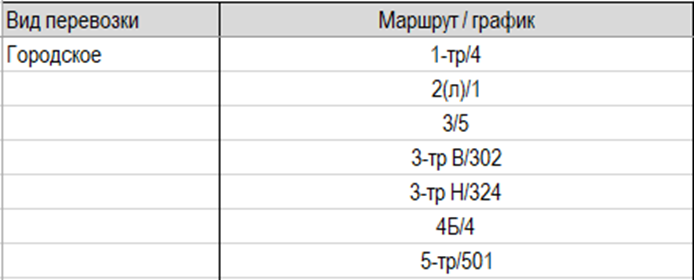 Категория перевозок (например, "Городское", "Пригородное", "Междугороднее").