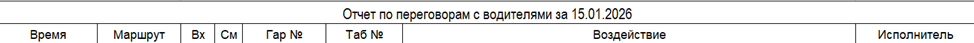 Отчёт предназначен для фиксации всех сеансов связи и информационных сообщений, переданных водителям через систему диспетчерской связи. Он отражает содержание переданных указаний и уведомлений. Отчёт используется для контроля оперативного взаимодействия диспетчеров с экипажами и документального подтверждения переданных команд.