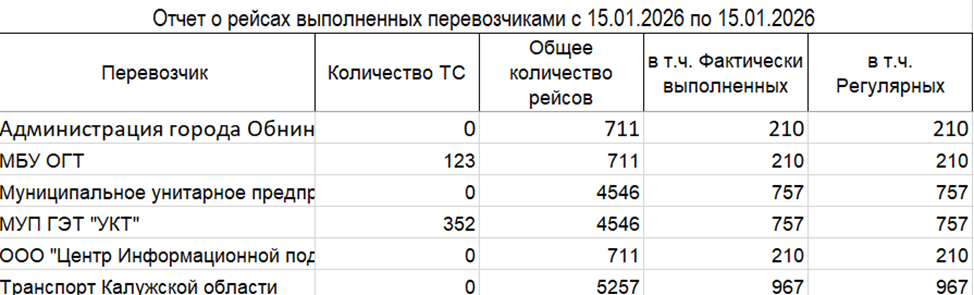 Отчёт предназначен для анализа работы всех перевозчиков, осуществляющих перевозки по единой маршрутной сети. Он отражает вклад каждого предприятия в общий объём перевозок и качество их выполнения. Отчёт используется для контроля выполнения договорных обязательств, распределения финансирования и оценки эффективности работы перевозчиков.