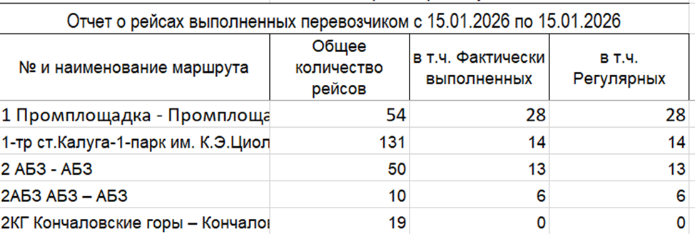 | в т.ч. Фактически выполненных | Количество рейсов, которые перевозчик фактически выполнил на данном маршруте. |