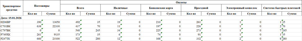 Анализ доходности и структуры оплаты проезда по каждому транспортному средству за указанный период.