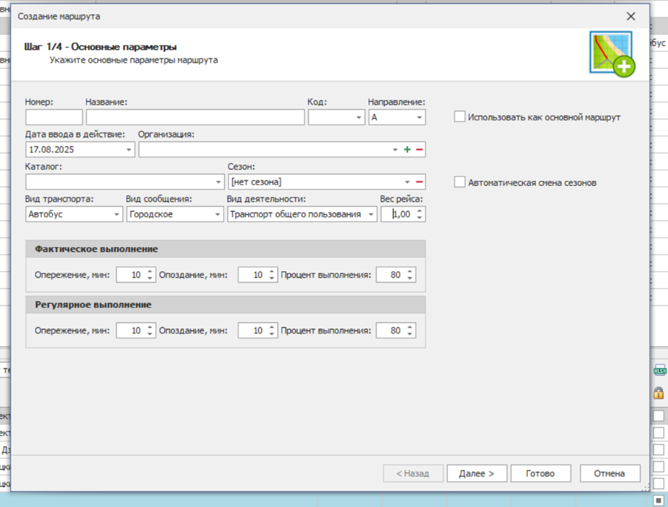 - Фактическое выполнение – допустимое отклонение на маршруте, при котором рейс будет считаться фактически выполненным.