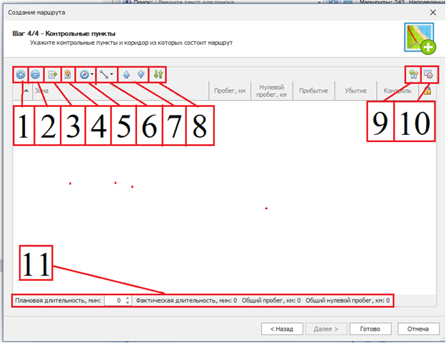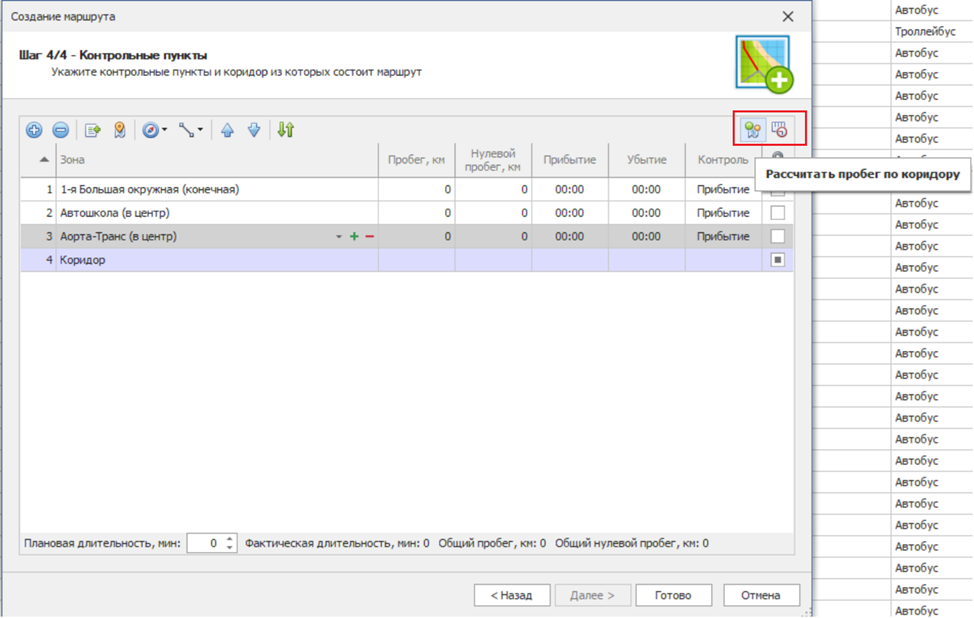 После добавления коридора на шаге 4/4 – Контрольные пункты, необходимо задать Плановую длительность рейса снизу слева.