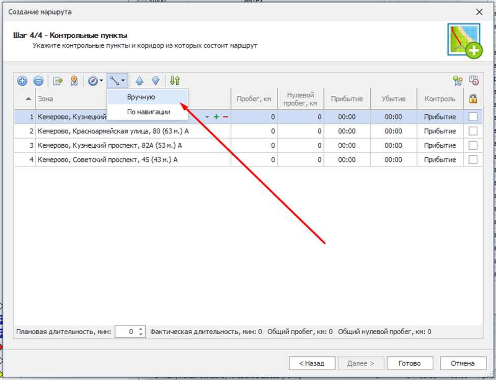 Прокладывание маршрута возможно "По навигации" и "Вручную"