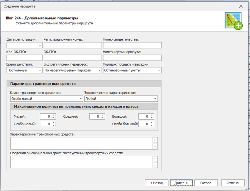 На следующей странице вы можете заполнить дополнительную информацию о маршруте: