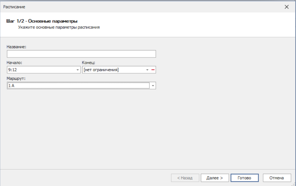 При необходимости можно указать конец действия расписания. Время указывается с начала первого контрольного пункта, а не с выезда из парка.