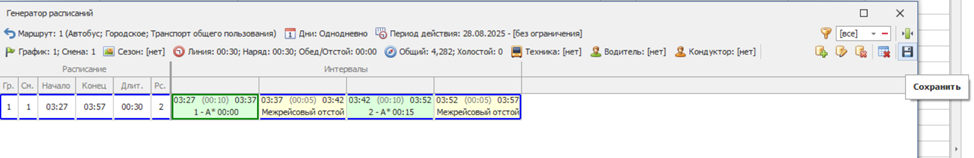 Для сохранения созданного расписания нажмите на иконку «Сохранить»