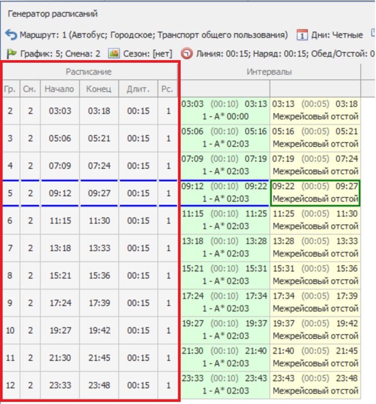 - Уменьшить интервалы - уменьшает вид созданного расписания.