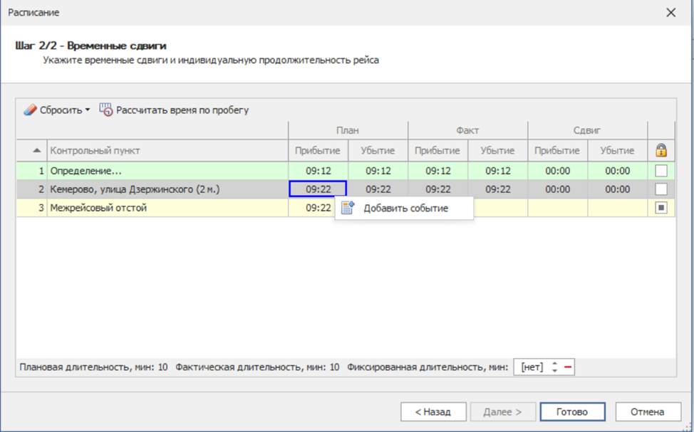 Сдвигать распорядок движения - позволяет автоматически сдвинуть время расписания, относительно добавленного события.