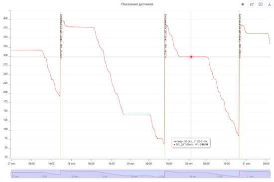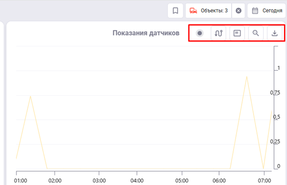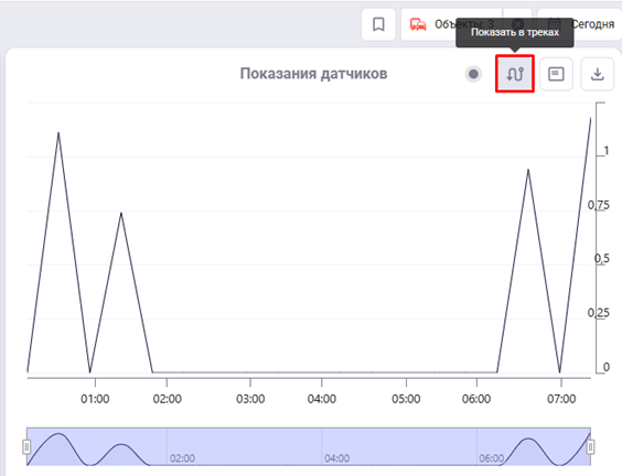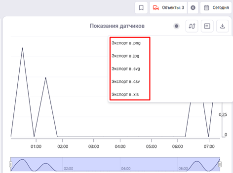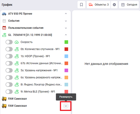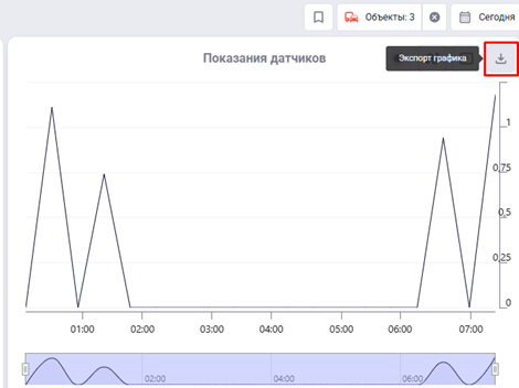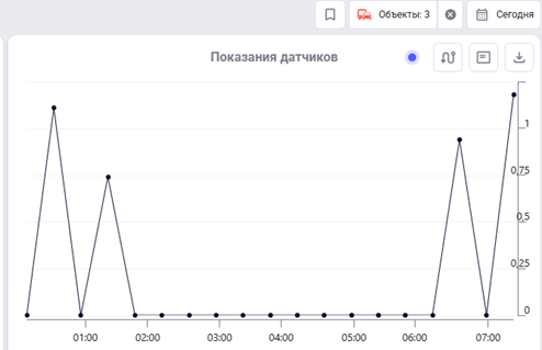 График - инструмент для визуального анализа данных, поступающих от датчиков, установленных на мобильных объектах, а также событий, зафиксированных системой. Позволяет просматривать показания в виде графиков и сравнивать данные разных объектов и сенсоров.