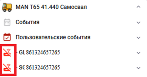 Некоторые датчики или контроллеры могут быть демонтированы или не передавать данные - их иконка изменится.