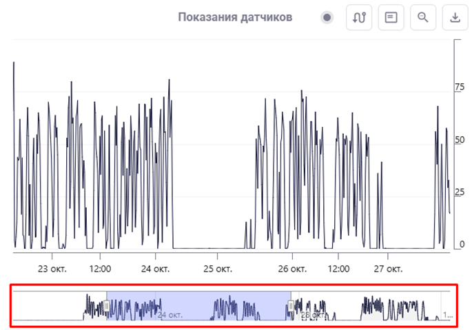 Кнопки на границах прямоугольника увеличивают или уменьшают объем отображаемых данных.