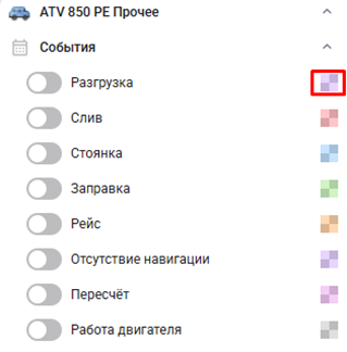 События - смена цвета заливки: нажмите цветной квадрат рядом с названием события и выберите цвет в палитре.