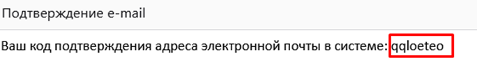 Получите письмо с кодом подтверждения.