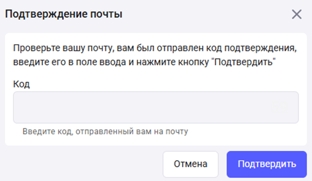 Введите код в открывшееся окно для завершения подтверждения.