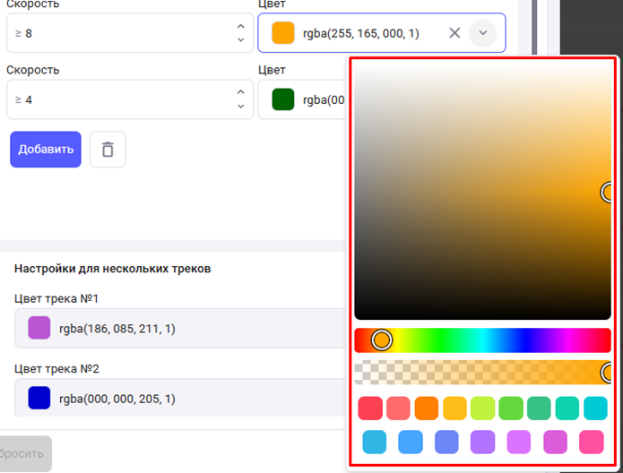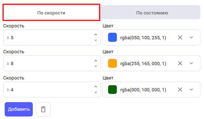 По датчикам: настройка цвета трека для состояний датчиков «Активен» и «Неактивен».