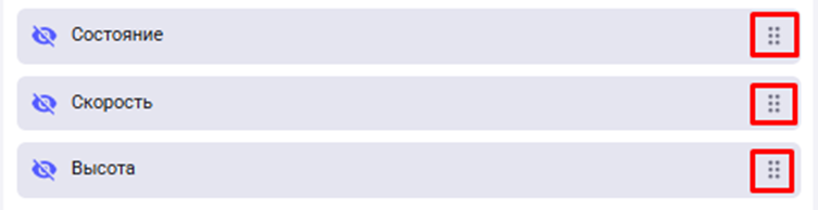 Можно управлять отображением данных, последовательностью и дополнительными настройками через значки глаз, перетащить, шестеренка.