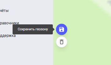 Если геозона создается через разделы “Мониторинг”, “Треки” и “История сообщений”, необходимо нажать иконку “Сохранить геозону” в виде дискеты в левом части карты: