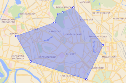 Для изменения местоположения узлов геозоны необходимо навести курсор на узел и с зажатой левой кнопкой мыши перенести узел в требуемое положение.