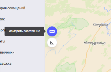 Позволяет измерять расстояние (км) по прямой или ломаной линии.