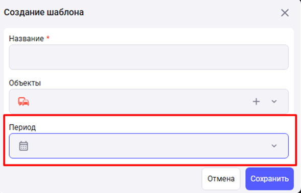 Шаблоны доступны в разделах: «Мониторинг», «Треки», «История сообщений», «График».
