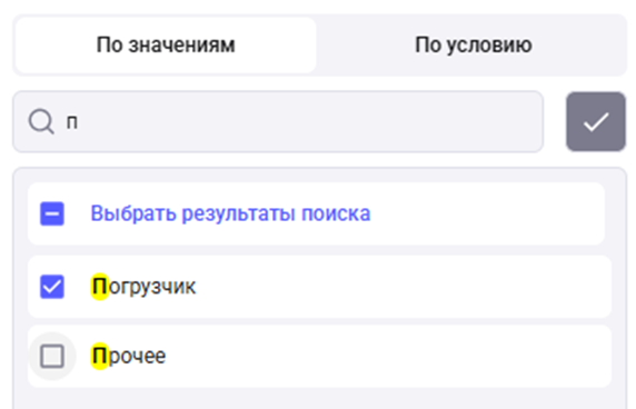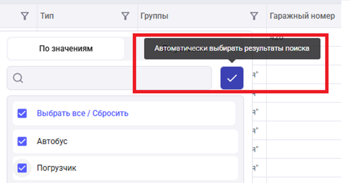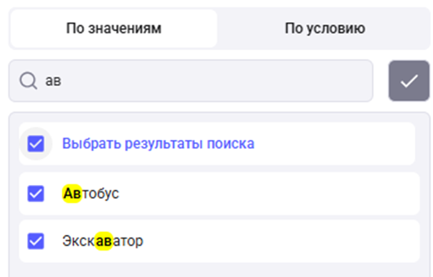Позволяет выбрать, какие значения отображаются в таблице, используя флажки.