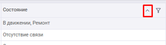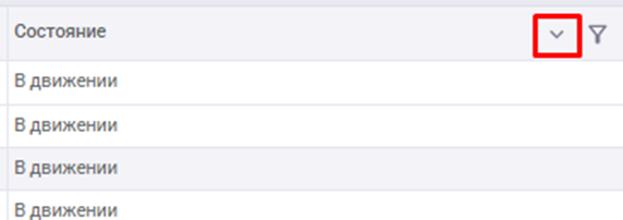 Фильтрация доступна для колонок, заголовки которых отмечены значком воронки.