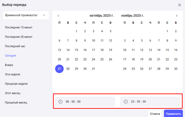 Инструмент выбора периода позволяет задать временной интервал, по которому будет отображаться информация.