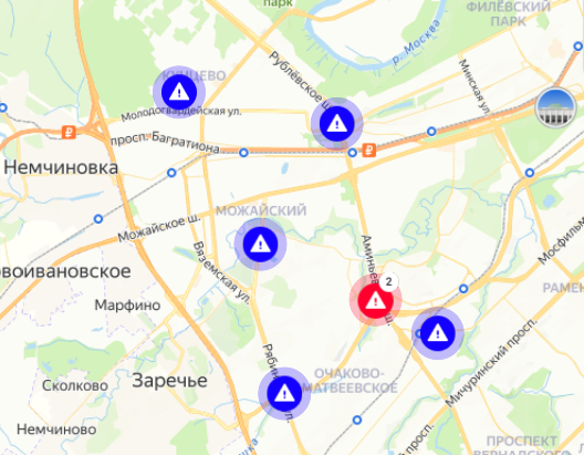 Если рядом сработали несколько тревог, они объединяются в один красный треугольник с числом, отображающим количество тревог.