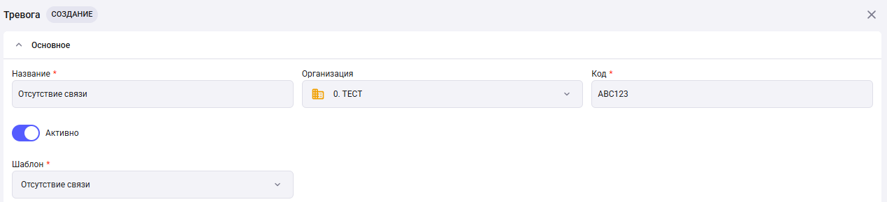 Для создания новой тревоги нажмите кнопку “Добавить тревогу” в Справочнике тревог.