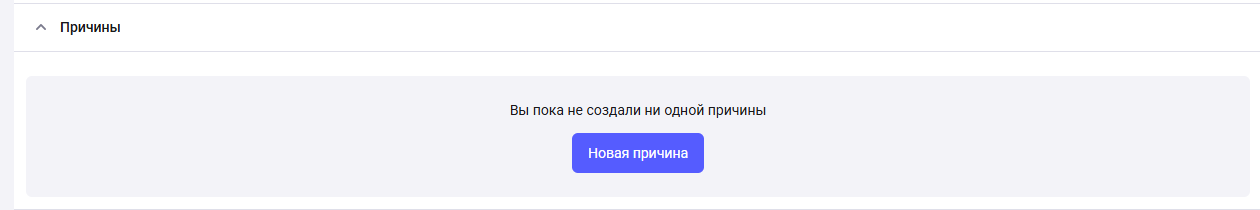 Для создания причины нажмите кнопку “Новая причина”.