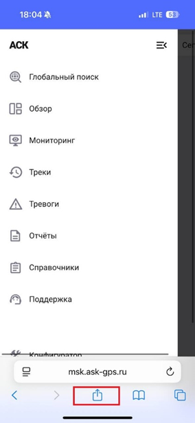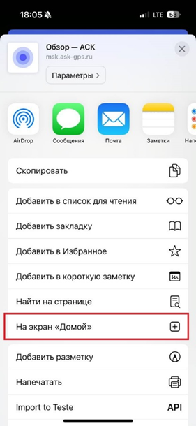 Установка ярлыка приложения "АСК-Платформа" на главный экран смартфона с ОС IOS
